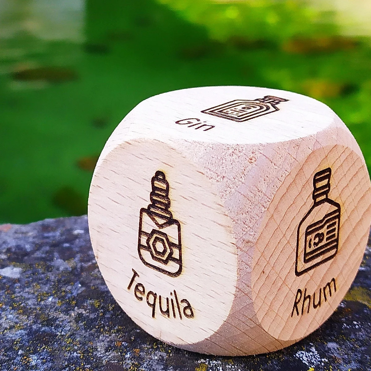 A dice for making surprise cocktails, just how we like them: Feel free to adjust the quantities to ensure the surprise tastes good! Hehe!